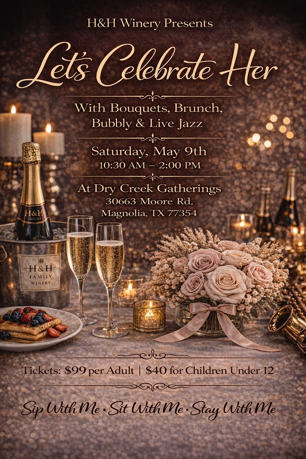 Inspired by their journey and the connections they formed, H&H Winery was established in March 2022. As one of the newest wineries in Houston's metropolitan area, we are dedicated to bringing a luxurious winery experience to our community regardless of your walk of life. We believe in that we are all born equal and we strive to spread love through (1) glass at a time. Our mission is to offer the very best to every wine connoisseur, regardless of their background or journey. Our motto is “Sip With Me Sit With Me Stay With Me".